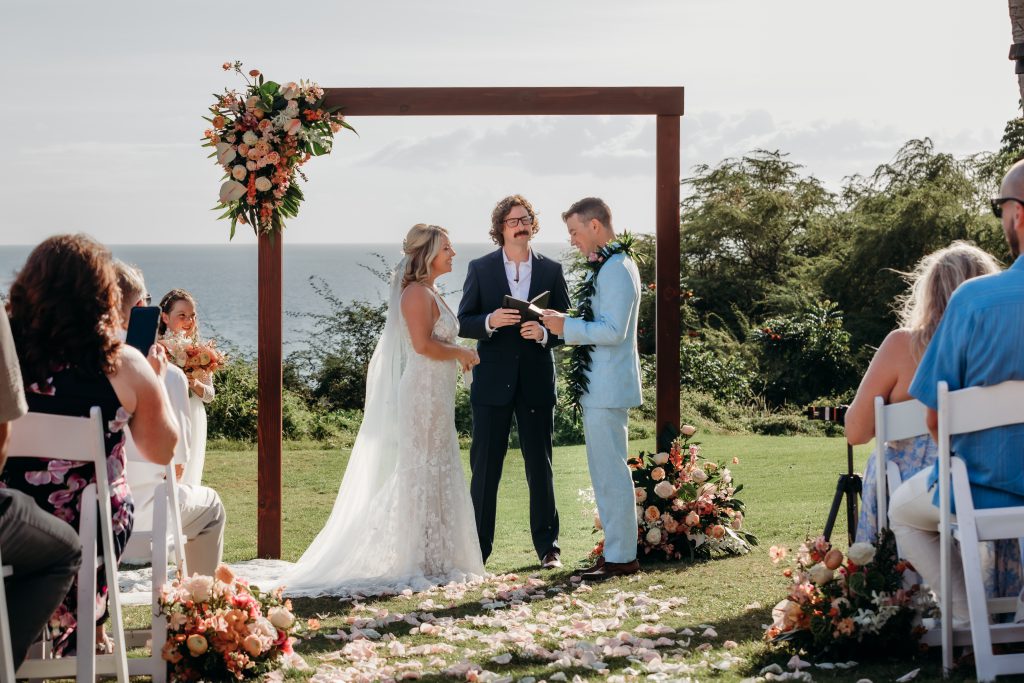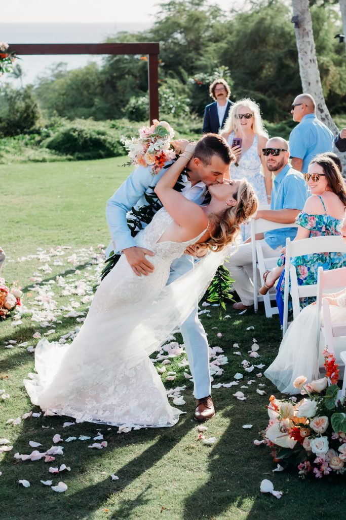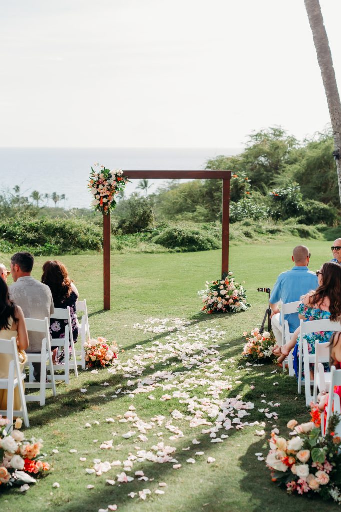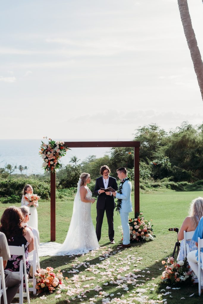 The two exchanged vows on the Wedding Knoll, a stunning elevated spot overlooking the ocean. With the sound of the waves in the distance and a gentle island breeze, the ceremony felt intimate and timeless. Surrounded by their closest family and friends, Dana and Chase shared heartfelt vows against the breathtaking backdrop of the Maui coastline.